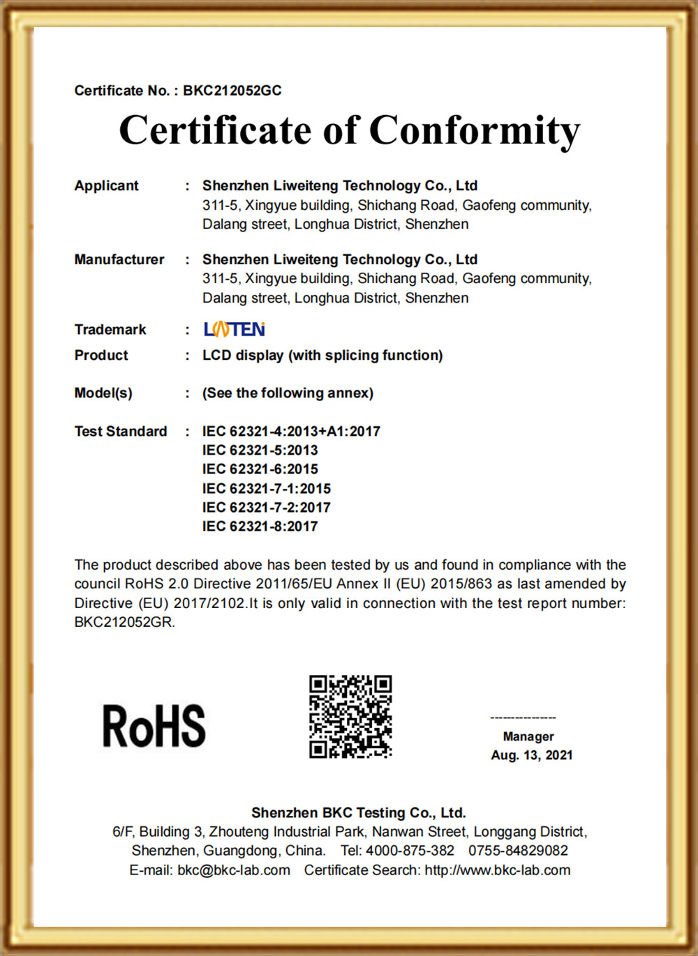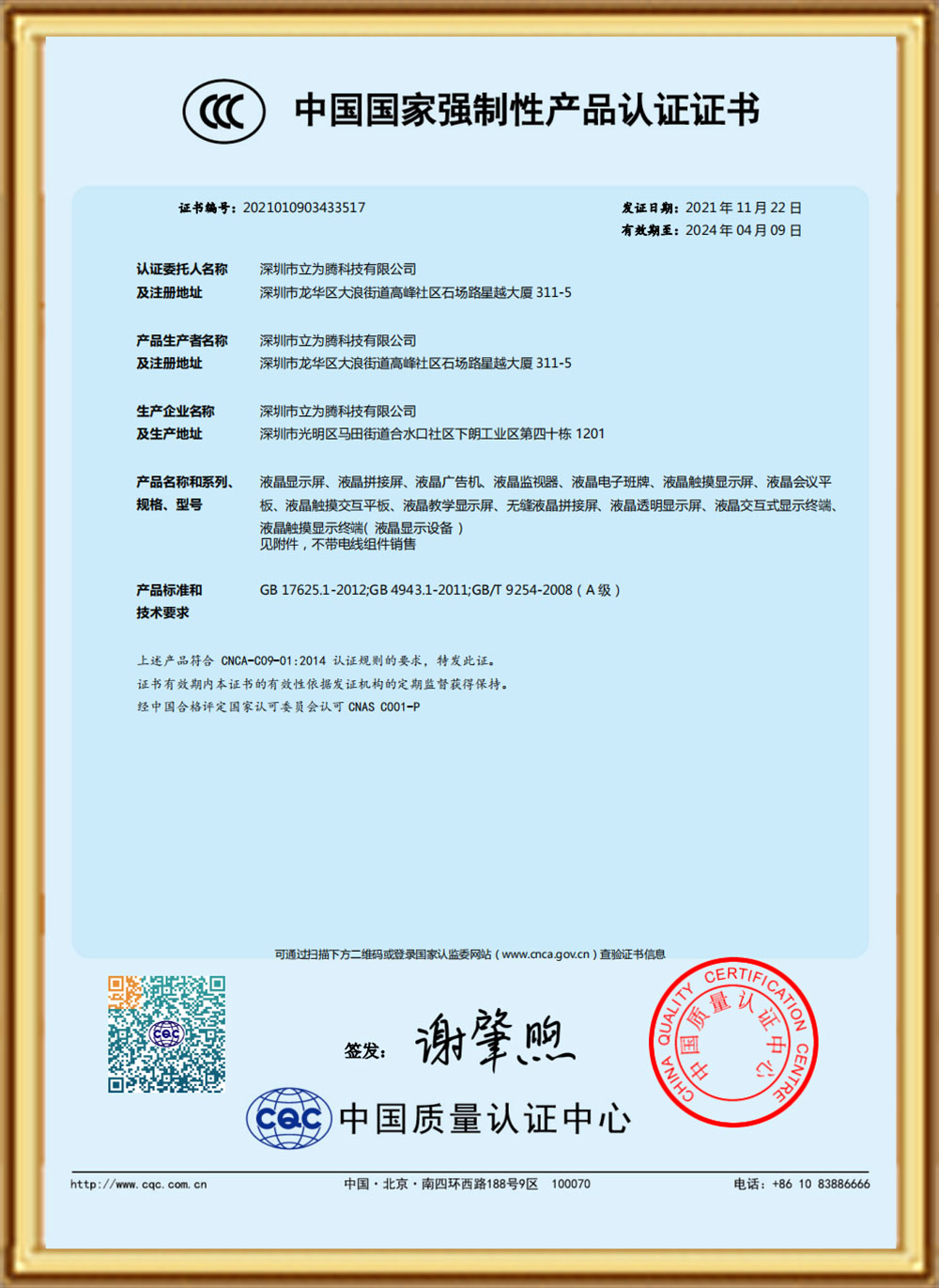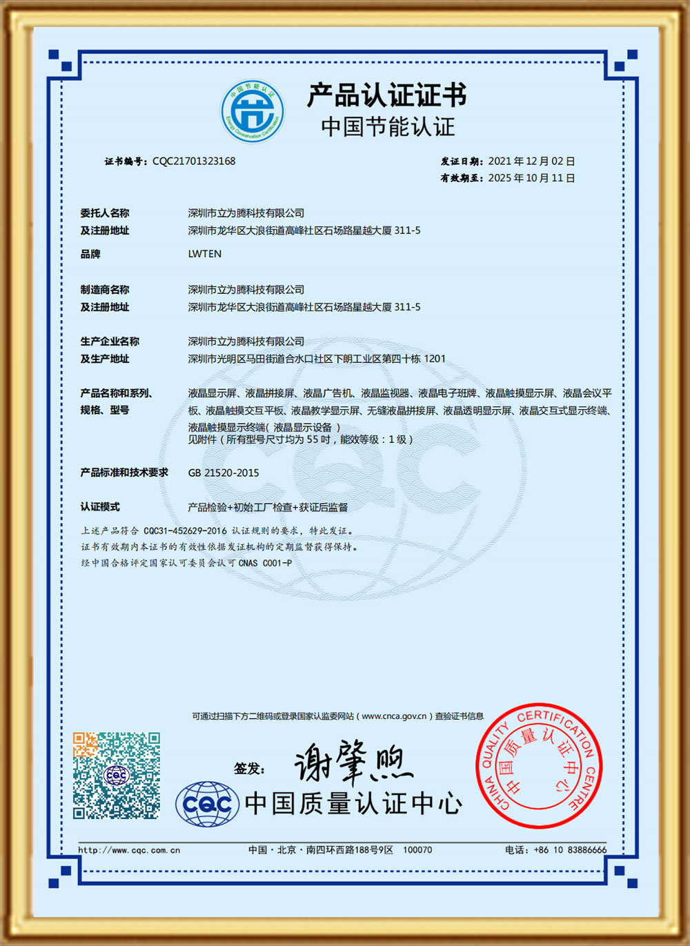 ● 被“深圳市商用液晶显示行业协会评为”优秀供应商”;