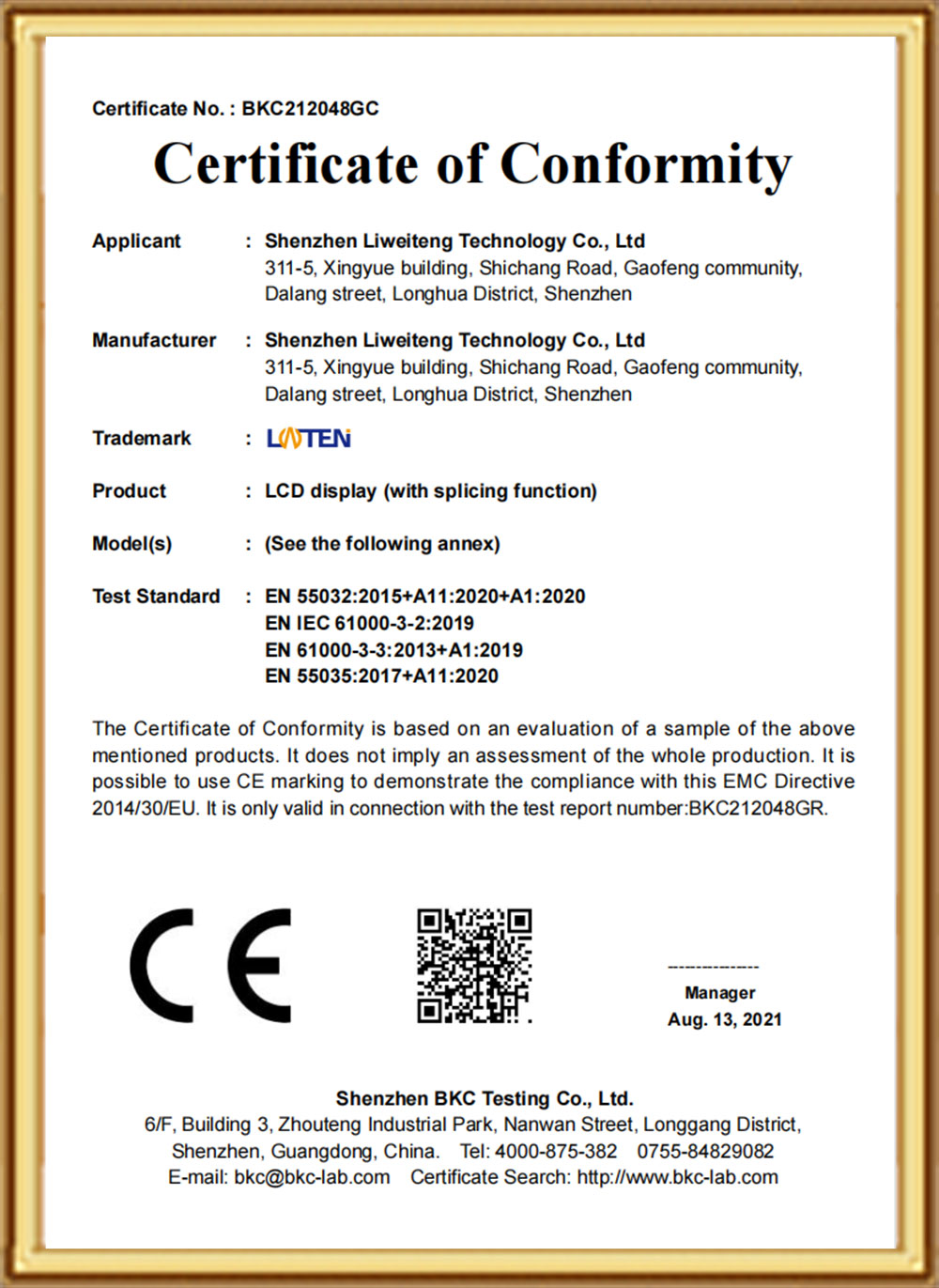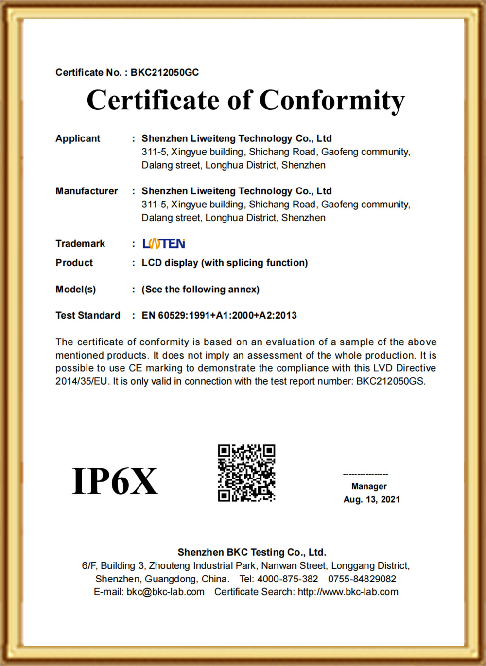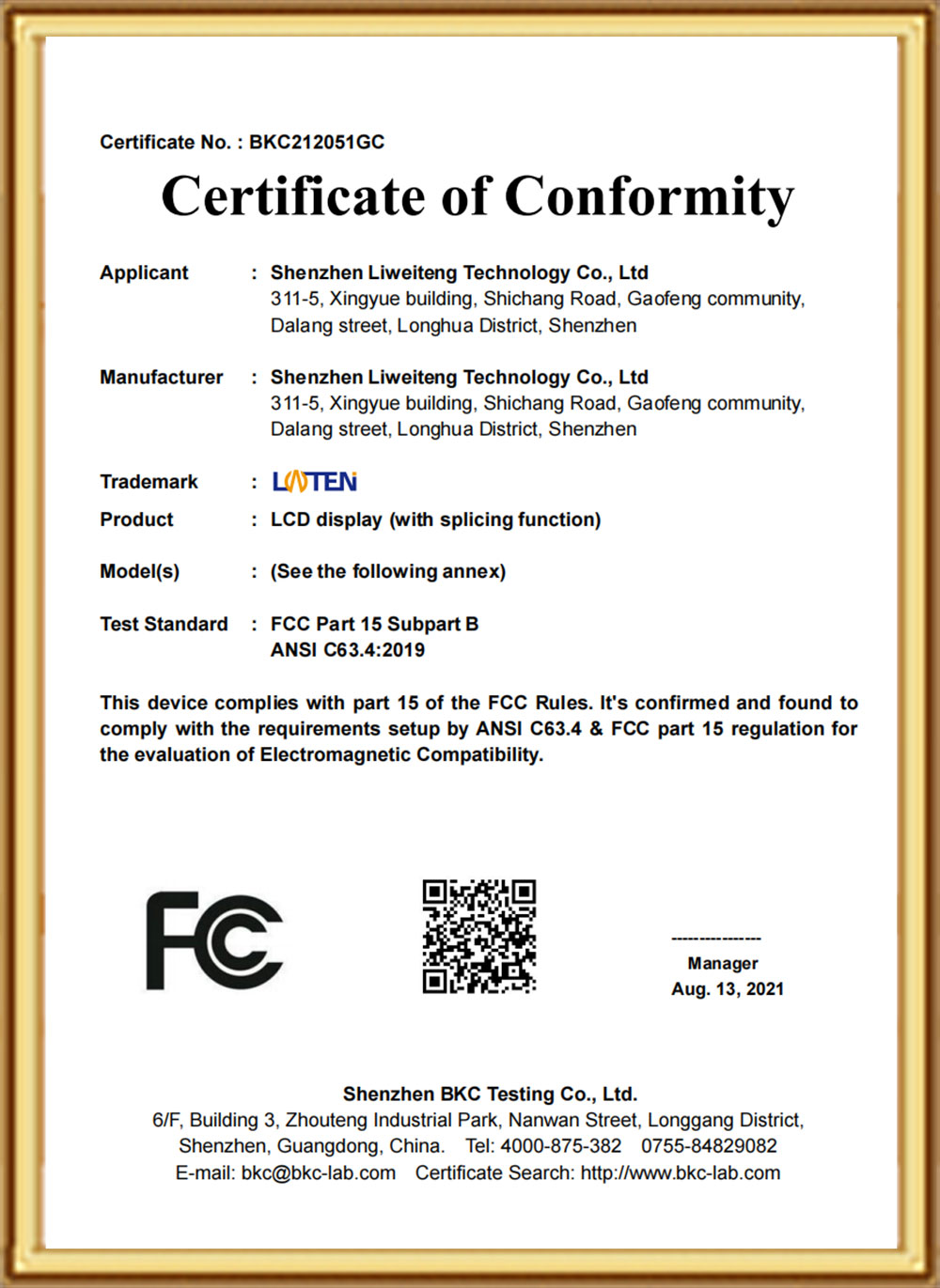 ● 被“深圳市商用液晶显示行业协会评为”优秀供应商”;